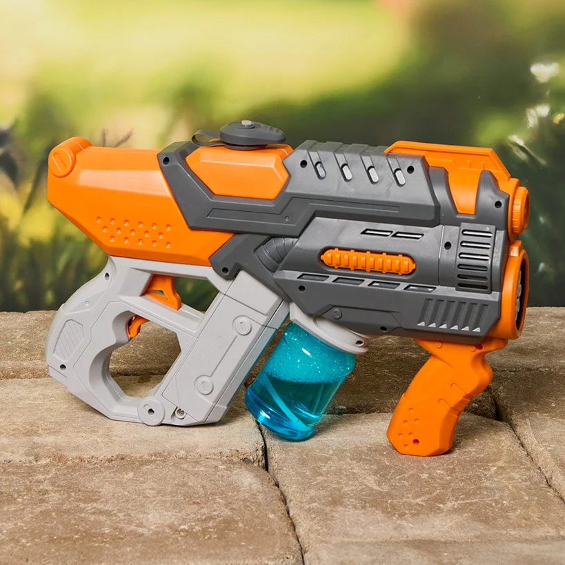 The 2-in-1 Water and Bubble Gun - Powerful Water Blaster and Bubble Maker provides double the excitement for your next afternoon of backyard summer fun. This dual-action outdoor toy allows children to switch between a stream of water and a continuous stream of bubbles with just the pull of a trigger. Whether you choose the Blue or Orange style, this kids' water blaster is designed for easy handheld use during parties or playdates. This portable bubble machine includes everything needed to start the bubbly action right away.
