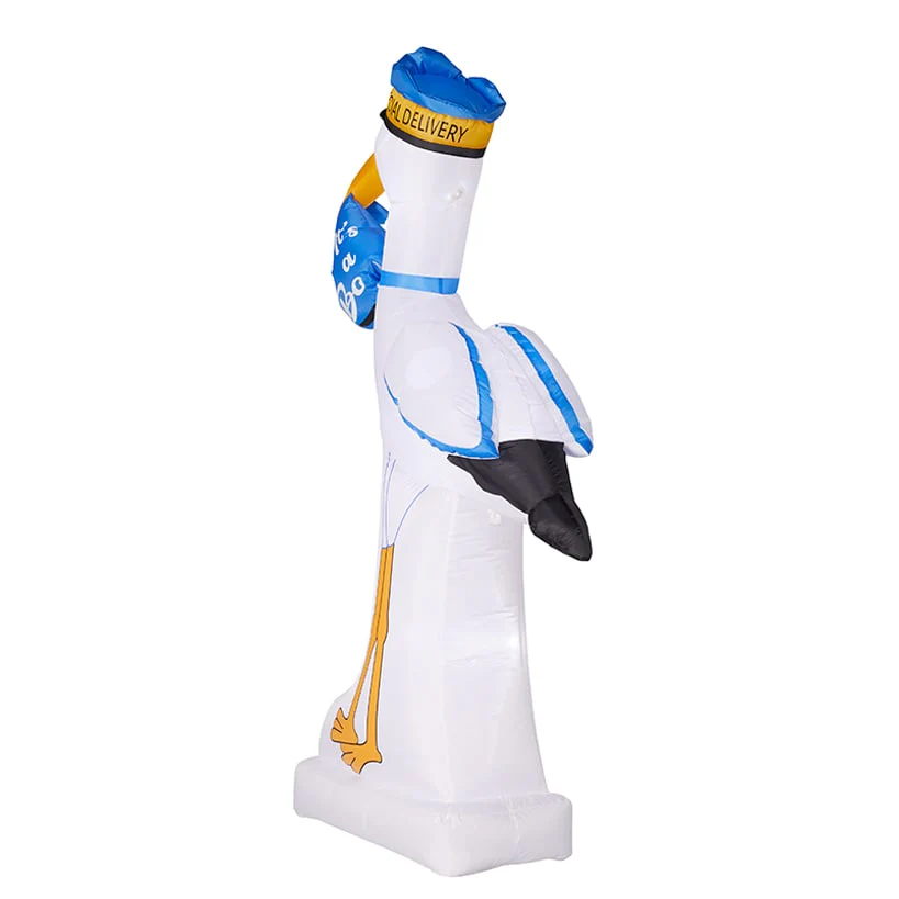 The 5-Ft. Baby Announcement Inflatables are a charming way to proclaim your new arrival to the entire neighborhood with a classic stork design. This eye-catching inflatable yard decoration creates a festive atmosphere for your front lawn or porch to celebrate your little one's homecoming. Choose from the Boy or Girl choices to find the perfect new baby lawn ornament for your gender reveal party decor or baby shower. You will love how this weather-resistant stork stands tall to share your joyous news with every friend and neighbor who passes by.