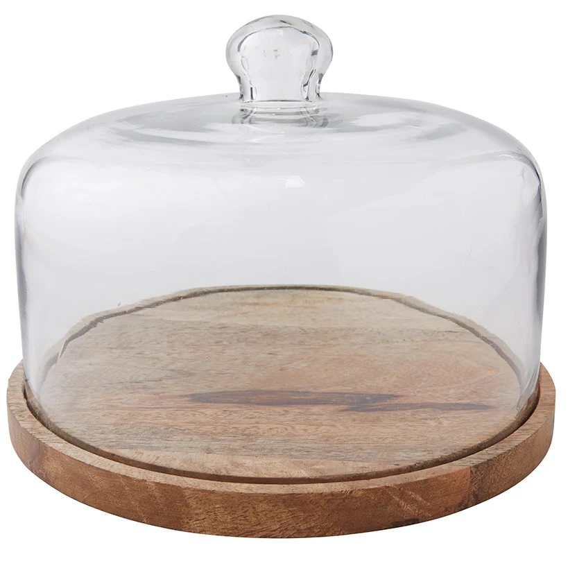 Acacia Wood Cake Stand with Glass Dome