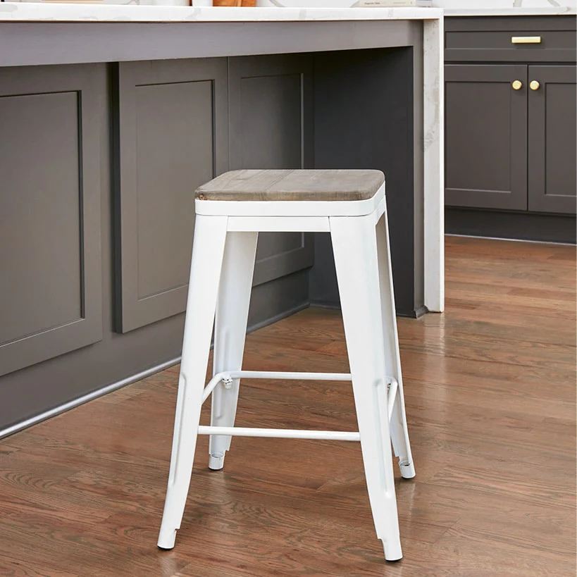 The Backless Metal Barstool with Wood Square Seat is the perfect blend of style and practicality for your kitchen island or home bar. With its clean lines and versatile design, this stool effortlessly complements any decor while providing a comfortable seating option for those long, cherished moments with family and friends. Lightweight and easy to move, it's a breeze to transport and rearrange, making it ideal for any space. The ergonomic seat and convenient footrest ensure maximum comfort, so you can relax and enjoy every bite or sip. Grab one for every member of the family!