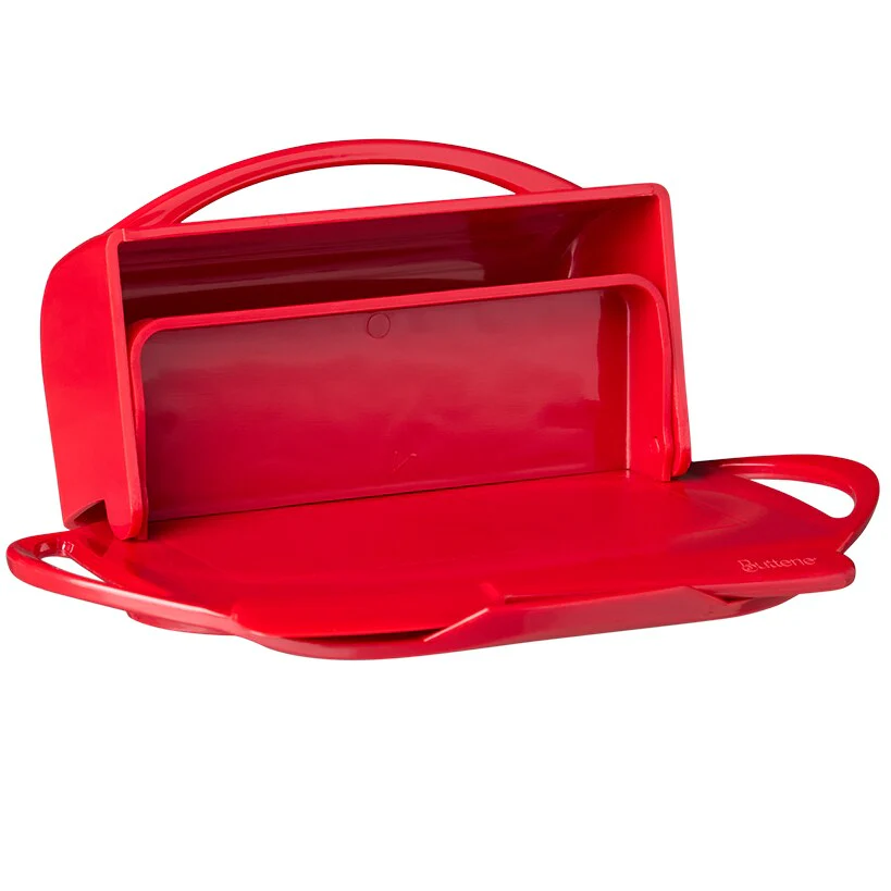 The Butterie Flip-Top Butter Dish with Matching Spreader is a revolutionary way to keep your butter fresh and accessible. Choose from Aqua or Red to perfectly match your kitchen's style. This innovative design features an attached flip-top lid that stays clean and out of the way, while the included matching spreader fits perfectly into its dedicated cradle. With a non-slip base and a built-in hidden scraper for easy cleanup, this sleek container makes spreading butter a breeze at every meal.