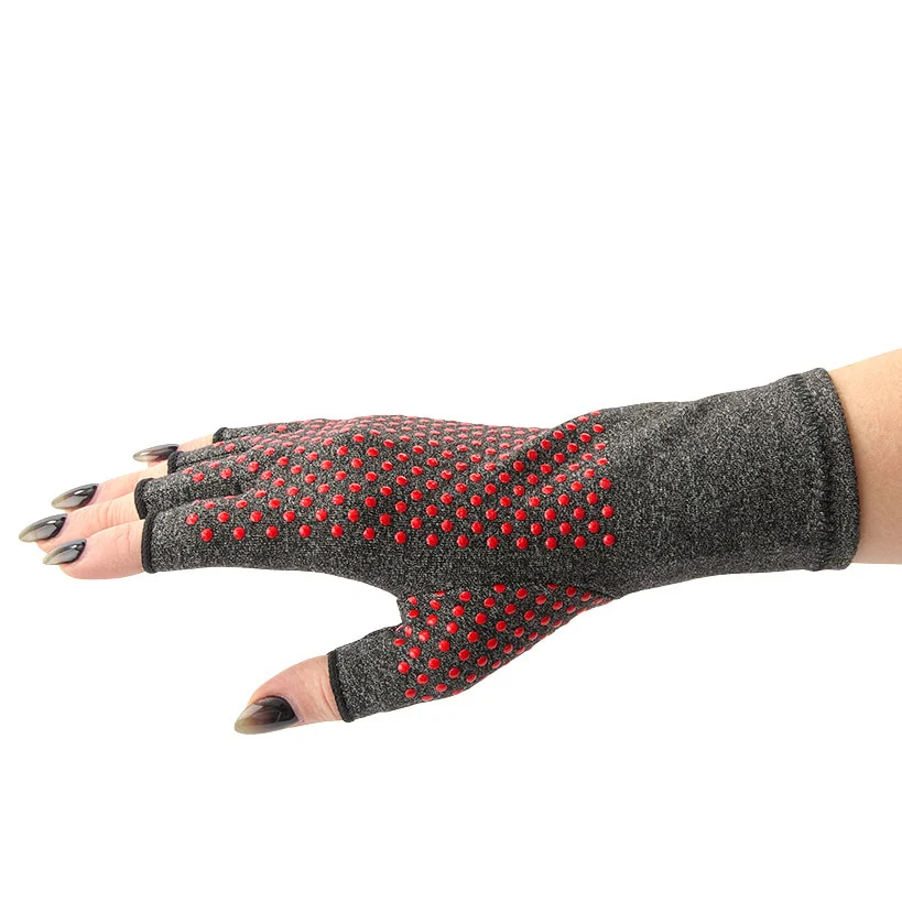 Comfort Support Gloves deliver lightweight therapeutic relief for arthritis and hand discomfort, blending support, style, and everyday convenience. Available in Compression and Magnet styles, these fingerless gloves are designed for ultimate flexibility, perfect for typing, texting, or crafting. Compression Gloves feature tourmaline-infused red dots for targeted pressure, while Magnet Gloves utilize magnetic powder for soothing joint support.