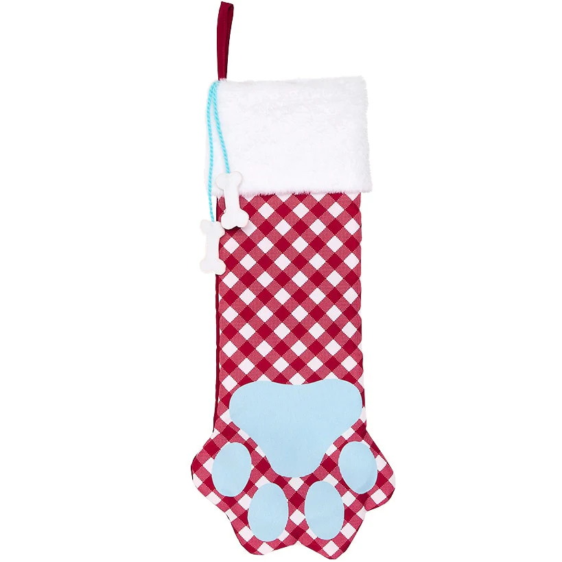 The Dog Pet Themed Stocking brings a fun, festive touch to your seasonal decorating with charming petâthemed holiday dĂ©cor. Choose from the festive Paw stocking with its plaid design and flocked cuff or the whimsical Woof stocking featuring a striped cuff trimmed in playful pompoms. This dog themed stocking is a delightful way to include your pet in your holiday home decor. Â