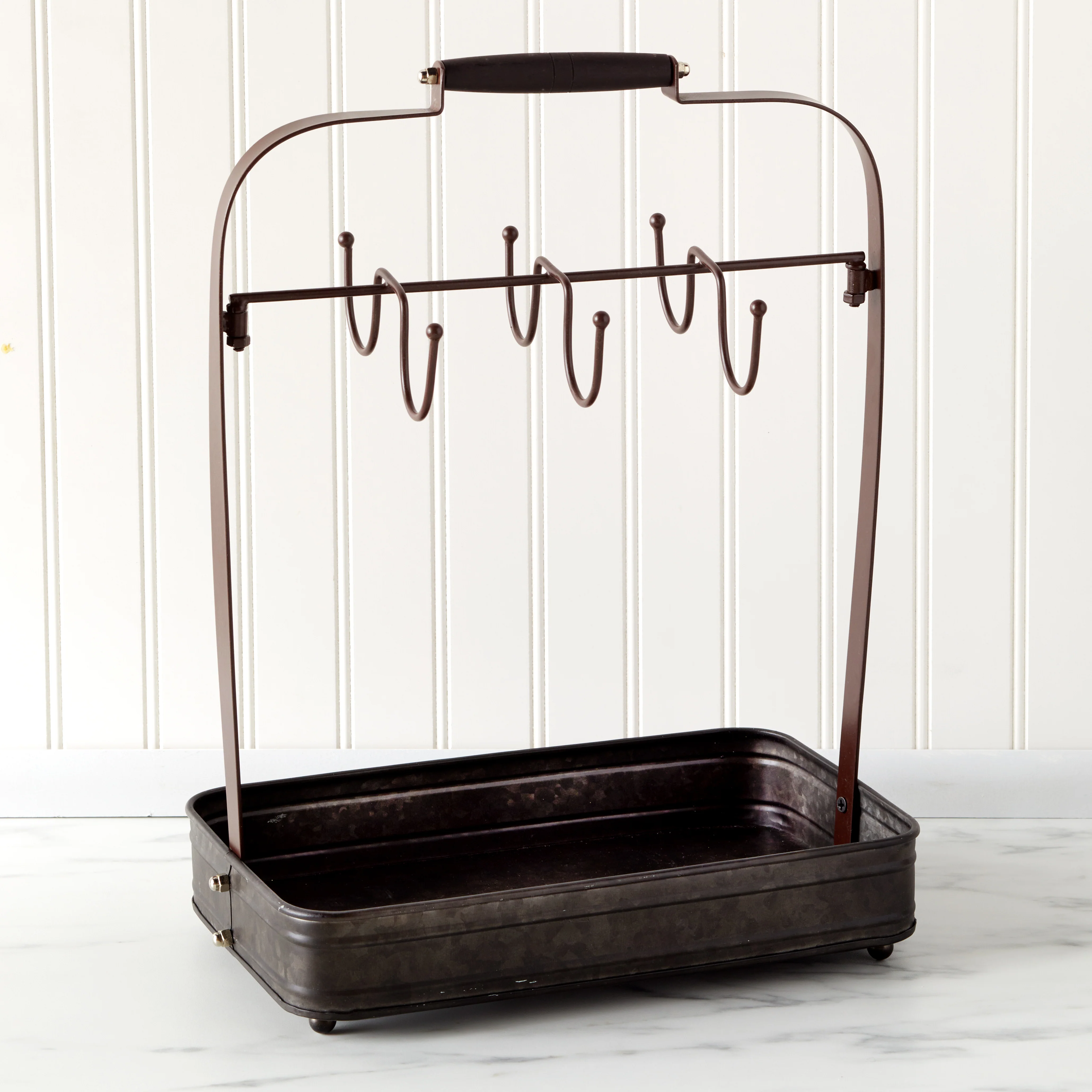 Farmhouse Coffee Mug Rack Tray Kitchen Organizer Decor Black