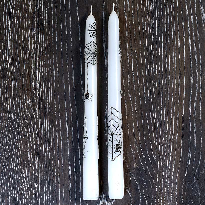 The Halloween Taper Candles Set of 2 creates an eerie haunted house atmosphere perfect for your spookiest celebrations. These striking candles feature intricate spiderweb designs, with the Orange/Black Spider Web candles showcasing bold web patterns and the White/Black Spider Web candles displaying detailed spiderwebs complete with creepy crawlers. Display these atmospheric candles on your mantle, dining table, or throughout your home to transform any space into a spine-chilling Halloween haven.