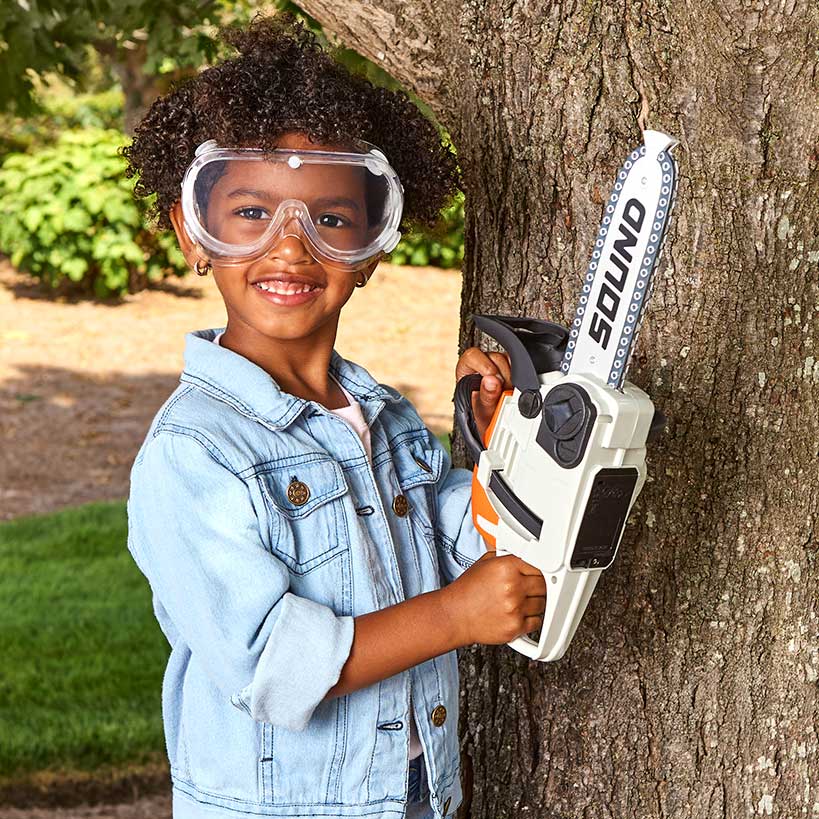 Kids' Chainsaw Toy - Realistic Sounds, Moving Chain, and Safety Goggles