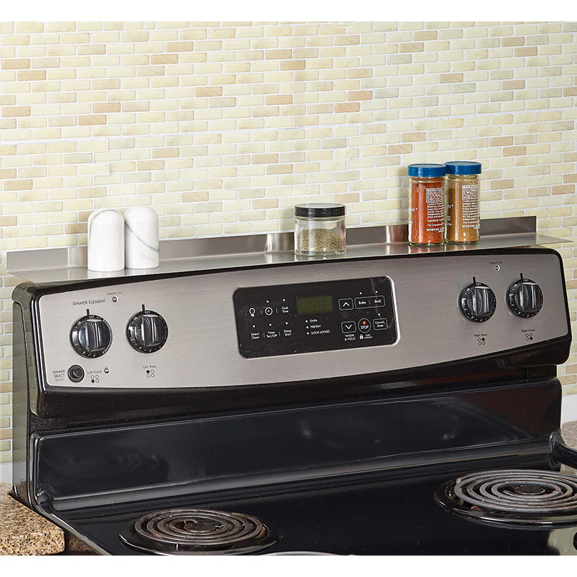 Add storage space to your range with this Magnetic Stovetop Storage Shelf. It holds kitchen accessories, while preventing items from falling behind the stove. Select from Black, Stainless Steel, and White. Secures magnetically without any screws, bolts or glue. Fits most flat and curved ranges. Easy to clean.